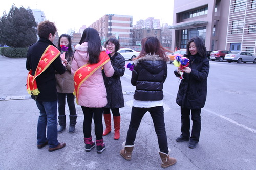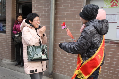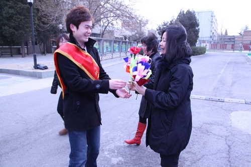 阳春三月,桃红柳绿,我们又迎来了一年一度的“三八妇女节”。 为了给学院女教职工以节日慰问,给其美丽的“惊喜”,高职学生会在学生工作党支部及高职团总支的指导下,经过精心策划、充分准备,于3月8日早上在学院大门口组织开展了为女教职工送手工纸花与小礼物的活动。 在活动中,学生会成员不惧寒风,热情地为每一位女教职工送上亲手折叠的纸花与一些小礼物,向老师们表达了自己的祝福与敬意。 此次活动,受到了老师们的一致好评。