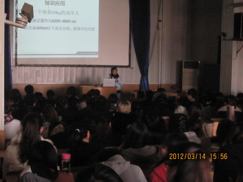 在三月学雷锋月活动期间,为使广大学生了解献血的知识,增强无私奉献的精神,积极行动加入到无偿献血的行列,2012年3月14日下午,学生处特聘请市红十字会血液中心的专家进校园为高职学生开展了一场关于无偿献血的知识讲座。