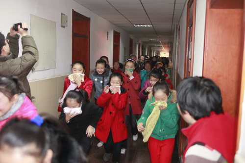 为使广大学生了解安全知识,学会在紧急情况下的逃生自救方法,提高应对突发事故的能力,2011年12月1日中午,学生处、保卫处联合组织了学生公寓火灾逃生演习。