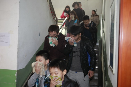 随后,各班学生回到宿舍做好逃生演习准备,各楼层指挥员和室内、外疏导员各就各位。在学生处主任郭爱莲发出“演习开始”的口令后,同学们按照预定的逃生路线,迅速、有序地疏散,到操场集合。