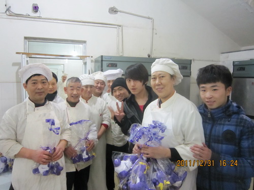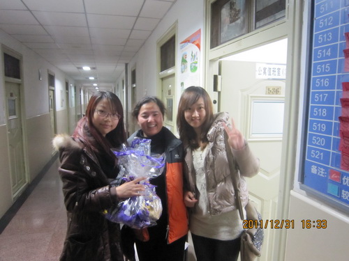 2011年12月31日下午,高职部学生会代表全院学生向默默在后勤岗位为同学们辛勤服务的老师们送去了节日的祝福及礼物。