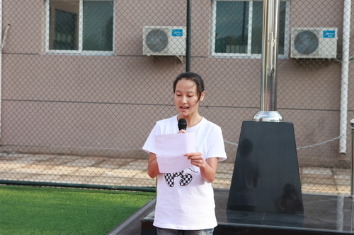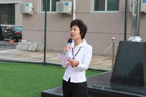 学生处主任郭爱莲向同学们介绍了升国旗的意义,并强调了参加升旗仪式的要求。