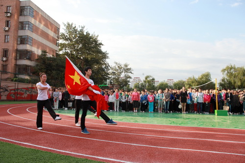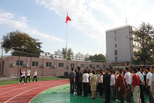 2011年9月9日早上7:30,我院在新落成的操场举行了新学期的首次升旗仪式。全体中专学生和大专学生代表参加了这一庄重的仪式。