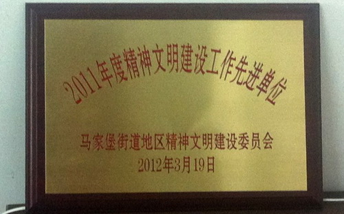 2012年3月31日,马家堡街道地区精神文明建设委员会在万芳苑商务酒店会议室召开了马家堡街道精神文明建设总结表彰暨创建首都文明区动员大会,表彰了2011年度精神文明建设工作先进单位以及2011年度宣传信息工作先进单位和个人。我院获得马家堡地区2011年度精神文明建设工作先进单位。