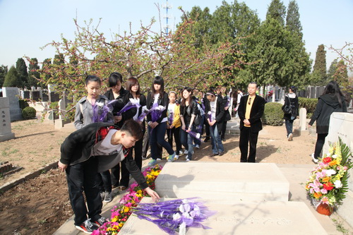 清明期间,北京戏曲艺术职业学院京剧系1、2年级学生及部分教师50余人按每年惯例,再次来到北京福田公墓,为我院第一任老校长,著名京剧表演艺术家、教育家郝寿臣先生举行祭扫。