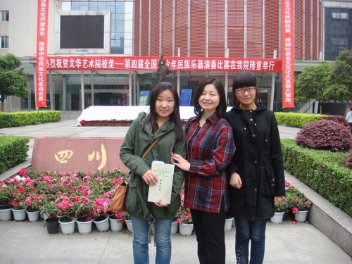 4月8日,带着全院领导、音乐系师生的嘱托,由张晓红副主任带队,周凌燕、刘三晖老师及两名学生一行5人来到了成都。四月的蜀国大地春暖花开、风景宜人,师生5人到达后无暇顾及美景,便紧张的投入到赛前准备中。张晓红老师负责与大赛组委会沟通,确保比赛的各个环节准确无误。周凌燕老师对待学生认真负责,力争使学生的演奏状态达到最佳水平。