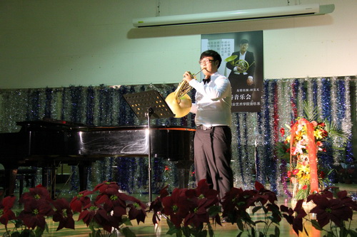 王海龙同学演奏了单茨奏鸣曲、莫扎特第四圆号协奏曲、罗泽尔双圆号协奏曲、F施特劳斯c小调协奏曲以及克罗尔无伴奏圣歌。他的精彩表演得到现场观众的热烈鼓掌。演出结束后,张诚心教授上台点评,对王海龙的演奏给予肯定,并指出了王海龙的不足之处,对日后该怎样练习作出指导。最后,祝真伟主任上台讲话,祝贺王海龙个人音乐会圆满成功,感谢张诚心教授多年来对音乐系的关心和支持, 鼓励同学们应经常进行艺术实践,系里也会为同学们提供更多的实践机会。最后,演员和嘉宾们合影留恋。