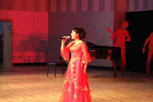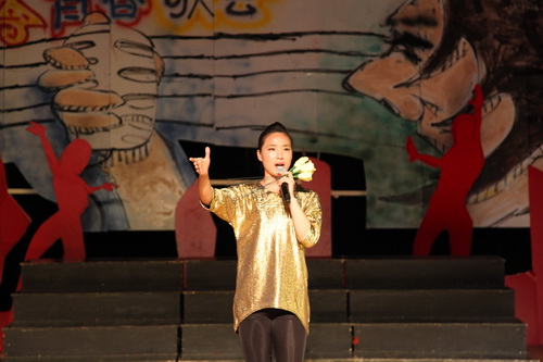 在歌会上,高职各班同学们精心编排和准备的节目依次亮相,节目内容丰富,形式多样,有独唱、合唱、歌曲串烧、音乐情景剧、乐器演奏等不同的表演形式。晚会由影视表演11班同学充满青春活力的音乐情景剧《在路上》拉开序幕。整台晚会高潮迭起,精彩不断。音乐11班梁雅娟演唱的《最初的梦想》,全情投入,声情并茂,表现了年轻人对梦想坚定、执著的追求;评剧11班刘冰演唱的歌颂98年抗洪英雄的美声歌曲《为了谁》,深情、高亢,具有深深的感染力;京剧11班杨畅、徐一丹两位同学的京胡演奏《迎春》,节奏欢快、流畅,人和乐器浑然一体,艺术表现力很强,一曲终了观众仍觉得意犹未尽;音乐11班表演的音乐剧《90后的我们》,表现了90后学生从单纯、青涩逐渐走向成熟的成长过程;评剧11班韩立姣演唱的《江山无限》,大气磅礴,气势如虹,给观众带来全新的艺术感受;音乐11班的混声合唱《青春舞曲》,优美动听,不同声部错落有致,体现了很高的专业水准;歌曲串烧,风格、主题多样,有表现怀旧情怀的,有歌唱友谊、爱情的,有表达青春梦想的。精彩的节目让现场不时响起阵阵热烈的掌声。晚会中间还穿插了抢答猜歌名的游戏环节,更活跃了会场的气氛,增强了台上台下的互动。同学们用歌唱、表演的形式尽情表达着青春的追求、迷茫、奋进,展现着青春的风采,抒发着青春的梦想。在欢乐、喜悦的气氛中,晚会圆满落下帷幕。