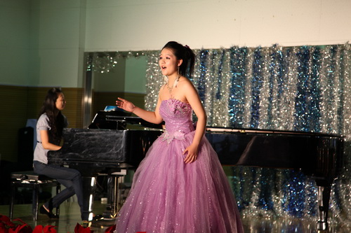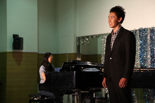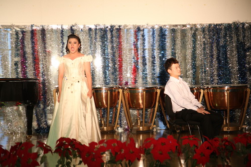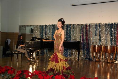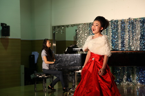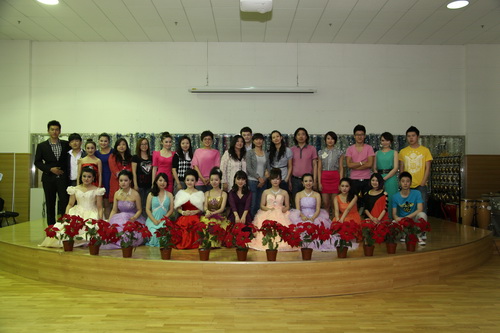 出席此次音乐会的有,音乐系主任祝真伟老师,声乐教研室的全体教师,和部分音乐系学生。 音乐会当天,同学们积极准备,从声乐表演、服装搭配、到整体表现,都充分展现出学生们对此次活动的重视。演出从音乐高二班孙胡蝶同学精彩的开场,到音乐高一班燕洁同学明亮优美的声音,每个人都发挥的淋漓尽致。程木楠同学的歌剧片段表演,更是新颖独特,非常具有舞台表现力。最后景涛富有情感魅力的偷洒一滴泪,把整个音乐会提到了高潮。音乐会还邀请了特殊的表演嘉宾:蚂蚁人声乐团,这是一支活跃于我院的新星演唱团体,他们用无伴奏的演唱形式演绎了两首原创作品,引得场下掌声不断。