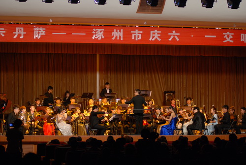 2012年6月1号,我校音乐系管弦乐团应河北涿州团市委,涿州中音艺术学校的邀请,在涿州进行交流演出。