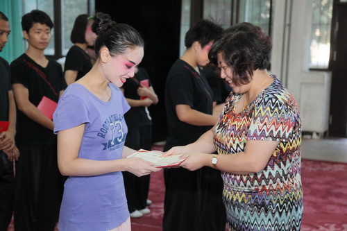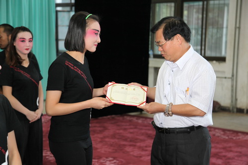 台湾戏曲学院张瑞滨向学员颁发结业证书