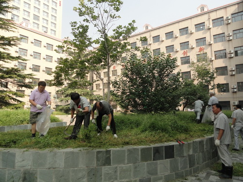 校园绿化方面,在经过一个长长的假期之后,院内的草木已生长的杂乱无章,有的杂草则长到1米多高,水木电师傅们齐上阵,对公寓花园草坪、新教学楼以及食堂周边的杂草、树木进行突击清理剪修;与此同时,有的师傅则义务为学院门口“院名石”上的字体重新进行涂描,加深字体颜色。通过综合服务处师傅们的共同努力,保证了校园环境的整洁、优美。
