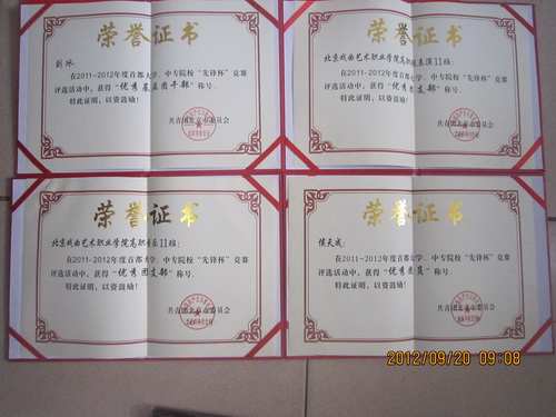 我院高职部分班级及个人荣获2011-2012年度首都大学、中专院校“先锋杯”优秀团支部、优秀基层团干部、优秀团员