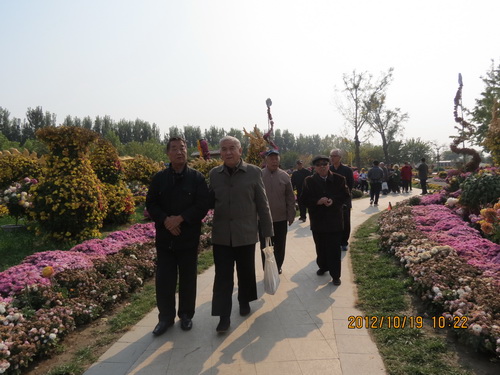 老干部们相继参观了顺义北京国际鲜花港和顺鑫鹏程食品公司。被誉为“人间仙境”的北京国际鲜花港举办的菊花文化节,采用室内布景与室外布展相结合的方式。展览共分“云山福地、花港菊韵、三品重阳”三部分内容,将传统与现代巧妙地结合,宣扬了尊老、敬老、爱老、助老的美好品德。在顺鑫鹏程食品公司,透过参观走廊里的玻璃墙,老干部们饶有兴致地参观了生猪屠宰车间和熟食加工流水线,近距离观看了整个“放心肉”的出产过程。