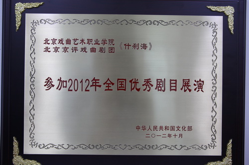 由北京市文化局策划、创作,北京戏曲艺术职业学院师生共同演出的大型现代评剧《什刹海》 在参加了2012年北京市优秀剧目展演、2012年北京金秋原创优秀剧目展演等20余场演出后,又被中华人民共和国文化部评选为参加“讴歌伟大时代 艺术奉献人民” 2012年全国优秀剧目展演的剧目。