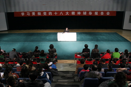 开展党的十八大精神主题宣传教育活动是当前的一项首要政治任务。为了进一步掀起校园学习宣传贯彻党的十八大精神的热潮,11月21日下午,学院专门邀请了十八大代表北方昆曲剧院院长杨凤一来我院作了专题辅导报告。教职工及学生共200余人参加了辅导会,院长王鸣铎主持了大会。