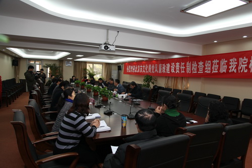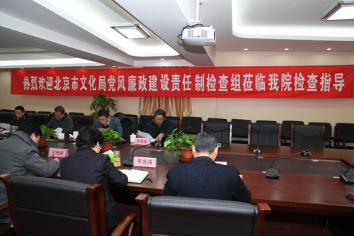 2012年12月4日下午,由北京市文化局党组副书记、副局长何昕、文化局人事处处长田金贵、文化局机关党委副书记吴秀泉、文化局产业发展处副处长陈雁军组成的党风廉政建设责任制检查组对我院2012年党风廉政建设工作进行了专项检查。学院领导班子全体成员、纪检委员及中层干部、工会委员、职工代表共21人参加了专题检查会议。