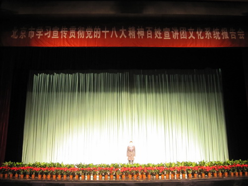 12月18日上午,北京市学习宣传贯彻党的十八大精神百姓宣讲团文化系统报告会在中国评剧院举行。我院师生参加了此次报告会。