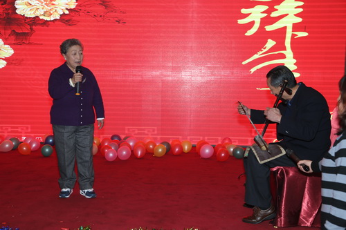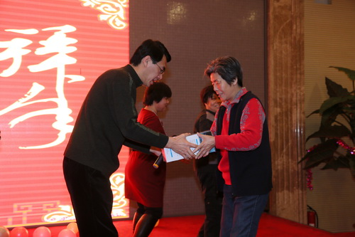 此次团拜会集聚餐、联欢为一体。首先老干部处处长张石红做2012年老干部工作总结及经费使用情况说明,为了更好的展示各项工作,今年老干部处在图书电教室的协助下,特意将老干部历次活动的照片和院庆60周年老干部文艺演出的相关视频制作成光盘,在酒店的LED屏上循环播放,与老干部们共同回顾2012年的各项工作。在于文青老师特意创作的蛇年新春贺词的朗诵下联欢会拉开帷幕,由罗惠兰、谢晔华、王如昆老师带来的京剧演唱精彩纷呈,赢得叫好声一片,武文霞老师一曲《赶牲灵》更是将老干部们带到了辽阔的陕北地区。中间穿插的游戏、脑筋急转弯等更使得此次联欢会妙趣横生。随后,院领导集体给老干部拜年,并分别抽奖。在一首浓浓的生日快乐歌中,刘侗院长、刘宝华书记与属蛇老干部们共切生日蛋糕、颁发生日礼物并发放了装有1000元春节慰问金的大红包。