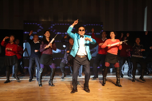地方戏曲系精心准备了反串评剧《秦香莲》,张宝学和张铁姗老师的精彩演绎,幽默搞笑,让大家喜出望外,赢得了观众阵阵掌声。原野、乐乐、孙殿东以及书记刘宝华亲情奉献的一首《我的好兄弟》深情之至,带动了全场的气氛。音乐系编排的《非诚勿扰》,长了头发的孟非,女扮男装的嘉宾都给大家留下深刻印象。小品《新柜中缘》由多个部门合作演出,老戏新排,包容了2012年众多娱乐热点,笑果十足,将全场推向了高潮。最后,后勤部门集体演出的《宝强style》更是别出心裁性感火辣,更是让观众爆笑连连,也迎来了阵阵掌声。