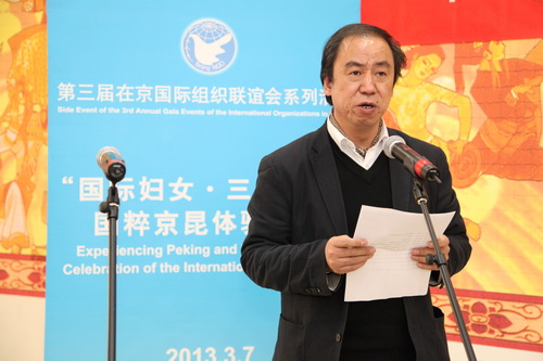 我院名誉院长孙毓敏也对大家的到来表示了感谢。在京国际组织代表——在中国韩国人会朴副会长、市民交协、市友协常务副会长李晓强、中联部沈蓓莉局长都对活动的举办表示感谢,并希望此次活动可以补充大家的戏曲文化知识,共同庆祝第103个“三八国际劳动妇女节”。