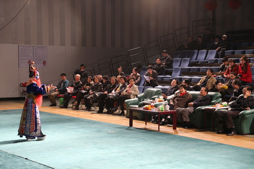 百发市长观看了我院学生表演的笙独奏、评剧《会计姑娘》、《秦香莲》,京胡演奏《迎春》,京剧唱段《坐宫》、《锁五龙》等节目。老市长对同学们的表演给予了表扬和肯定,对同学们的进步给予了肯定。他亲切的鼓励小演员们要利用在校时间好好学习文化知识,努力提升专业水平,迅速成长,成为艺术事业的接班人。