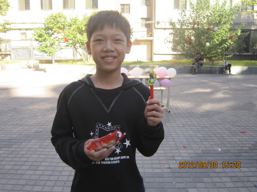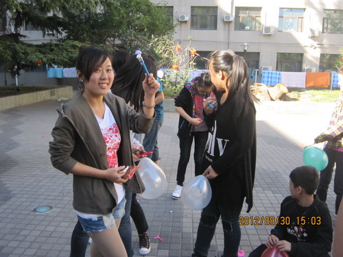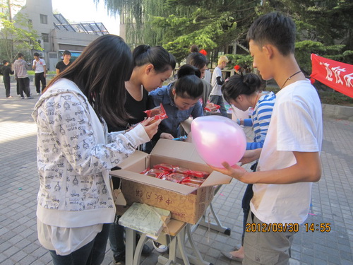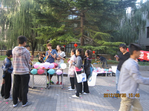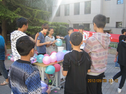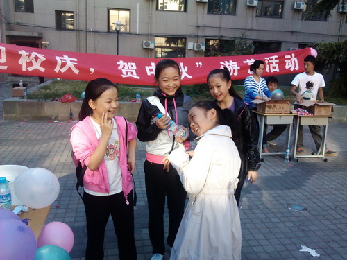 下午3:00活动正式开始。同学首先领取了学院为大家准备的精美月饼,然后又兴致勃勃地参加了游艺活动。同学们先从指定地点获取装有校庆相关知识问题的气球,扎破气球之后回答问题,答对的同学都得到了一份的精美礼品。同学们都玩得兴高采烈不亦乐乎。