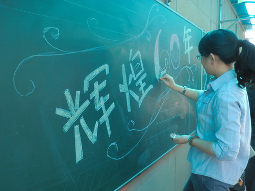 为迎接党的十八大胜利召开,并庆贺我院建校60周年校庆,在学生工作党支部的倡议下,10月24日,我院高职5名学生入党积极分子用板报的形式向建校60周年献礼。