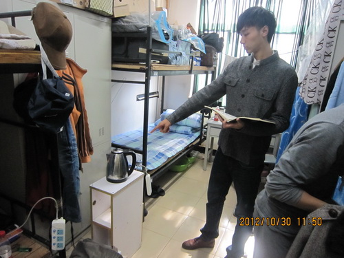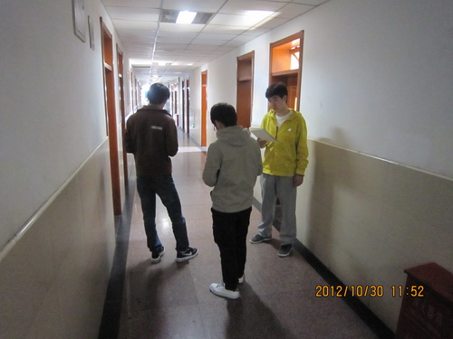 为配合我院学风建设,促使我院学生养成良好地生活习惯,2012年10月26日下午3点,我院高职学生会纪联部开展了高职学生公寓卫生及电器安全使用情况检查活动。