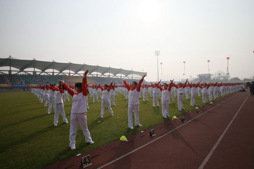2012年10月20日,北京市第一届宣传系统职工运动会在朝阳体育中心隆重举行。我院组织600名学生在运动会开幕式上进行了第九套广播体操的展示。
