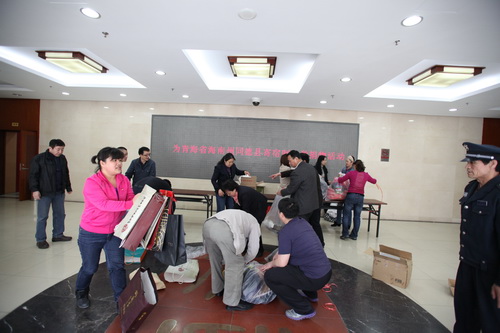 为了更好的落实党的十八大精神,提高全体党员的党性观念,奉献爱心,让边远贫困地区的孩子们健康成长,4月26日上午,学院行政党支部和机关党支部组织开展了为青海省海南州同德县寄宿制小学学生献爱心捐赠衣物活动。