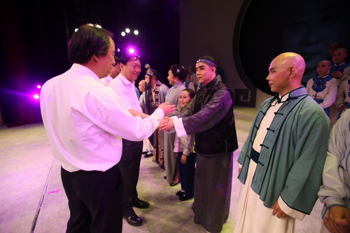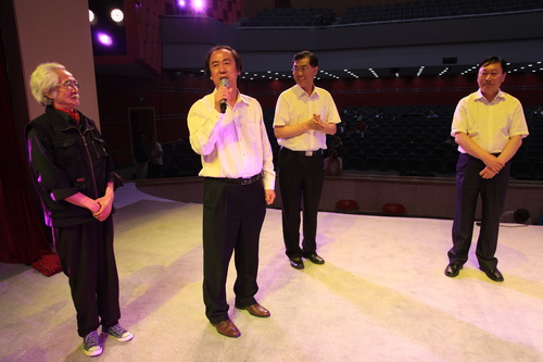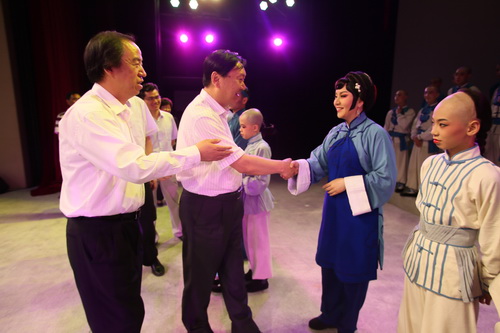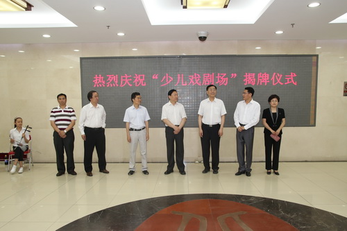 5月26日下午2点,市文化局局长陈冬,党组书记张文华等一行到北京戏曲艺术职业学院,为“少儿戏剧场”揭牌剪彩,并审看了“2013‘北京春苗’行动优秀少儿题材剧目展演暨少儿戏剧场·2013夏季演出季”两项活动的开幕演出——原创少儿京剧《少年马连良》。陈冬同志首先肯定了这是台佳作,尤其是它所具有的励志性,不仅能激励观众,更能鼓励师生们像前辈一样踏实学戏,好好做人,树立“戏比天大”的敬业精神。然后,他从教学与实践结合的角度,肯定了“少儿戏剧场”对于艺术教学实践的重要作用,鼓励并支持北戏办好“少儿戏剧场”。