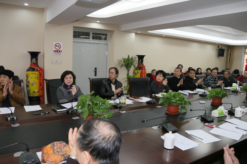 刘院首先指出,学院为推进“六个一工程”彰显办学特色,将艺术家们请到学校来,我院的青年教师们应该抓住这个机会和老师们好好学习、请教,在专家们的引导、影响和帮助下,迅速提升自己的艺术表演和教学能力。刘院随后向在坐专家及京剧系在座教师们介绍了我院刚刚接到的,关于承担编纂国家“十二五” 职业教育规划教材高职京剧剧目教材的消息,希望京剧系老师与艺术家们密切合作,以编写本教材为契机,对推进学院“六个一工程”实施产生积极的影响。就我院在职教师应如何与老专家们合作,刘院提出了五点要求,他希望我院教师要抓住机遇虚心求教;放下架子摆正位置;搞好服务做好助手;录好资料出好教材;搭好台子接过重担。