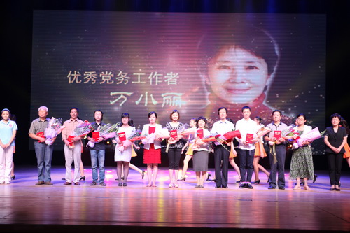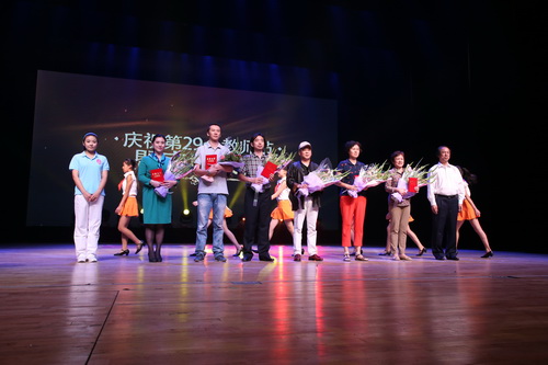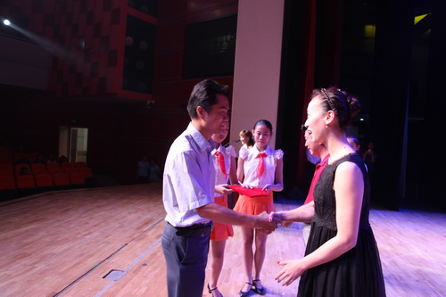 在颁奖仪式环节,北京市文化局党组成员、副局长吕先富、北戏院长刘侗、党委书记刘宝华、党委副书记毕兆炜、副院长黄平、黄珊珊、吴蕾分别为获得红烛奖、育才奖、春晖奖、耕耘奖、年度优秀党员、党务工作者及优秀党支部、优秀教师、优秀工作者、优秀班主任的老师进行了表彰。