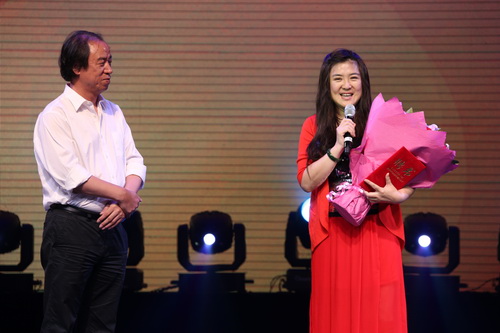 院长刘侗为著名女高音歌唱家万山红颁发了聘书