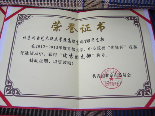 高职音乐2012班、高职戏曲2012班被评为先锋杯优秀团支部;