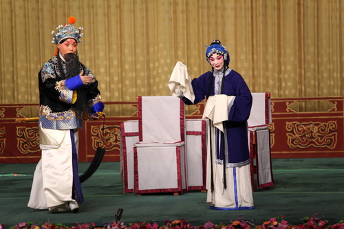 12日的演出由青年演员莎霏与马博通出演的《坐宫》开场。程派的《坐宫》与其他流派相比各有千秋,演员莎霏的演出也独具光彩。演出的中轴由李丽与上海京剧院优秀言(菊朋)派老生陈圣杰合演《贺后骂殿》。这是一出程、言合唱,久享盛誉的“对儿戏”。李丽嗓音宽亮、扮相俊美,身为京剧在读研究生的她在李老师的教导下对表演有了更深层次的理解和把握。而全场演出的压轴大戏《汾河湾》由上海京剧院的当家程派青衣赵欢与天津京剧院老生新秀凌珂联袂出演。赵欢在李文敏老师的教导下沿宗程袭赵(荣琛)的风格表演细腻华润,他与凌珂的配合也非常默契,这出大轴戏展现出了我国新一代青年京剧演员的较高水平,使观众过足了戏瘾、回味有余。