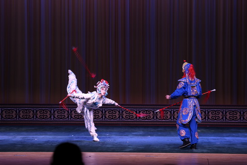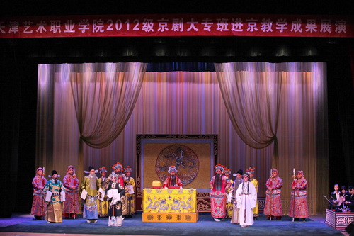 天津艺术职业学院是一所久负盛名的国办全日制艺术类高职学院,多年来培养出众多优秀的戏曲演员。本次来京演出,天津艺术职业学院带来了《锯大缸》、《四郎探母—坐宫•盗令》、《小上坟》《贺后骂殿》、《棒打薄情郎》、《金翅大鹏》共六出折子戏。所演剧目特请宋丹菊、李文敏、孙元喜、张艳玲、石晓亮等众多名家为小演员们排练、指导。不论是久享盛誉的程派名剧《贺后骂殿》,还是难度极高的武生戏《金翅大鹏》,演员们在台上感情充沛的细腻表演,使观众朋友们过足戏瘾,回味有余。