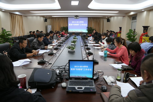 为确保学院教育质量的稳步提高,加快青年教师队伍的成长,促进青年教师的思想素质和业务技能的不断提高,充分发挥老教师的示范、引领作用。2013年11月20日下午,学院在第一会议室举行了2013—2014学年教师“传帮带”工作会议,党委书记刘宝华、副院长吴蕾、教务处主任易梅、各系部主任以及参加“传帮带”的教师出席了会议,本次会议由教务处副主任王雷主持。
