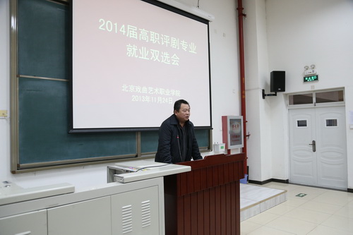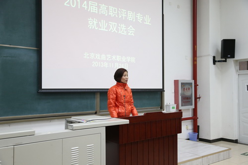 11月23、24日,为妥善解决学生就业问题,使优秀学生能够进入到剧(院)团更好的为祖国的文化事业做贡献,北京戏曲艺术职业学院举办了2014届高职毕业生汇报演出暨就业双选会。利用北戏少儿戏剧场舞台,由北戏地方戏曲系高职评剧毕业班学生带来了《包公赔情》、《清风亭》、《刘巧儿》、《林冲夜奔》等优秀传统剧目,向前来观看的中国评剧院有限责任公司、黑龙江省评剧艺术中心、石家庄市评剧院一团、石家庄市评剧院青年评剧团、河北唐山市评剧团等来自全国各地的院团领导展现了北戏毕业生们的风采。