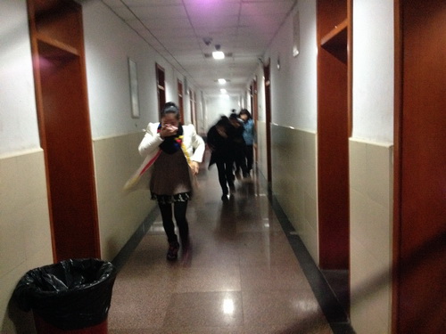 为了使学生了解和掌握安全逃生知识,学会在紧急情况下的逃生、自救方法,提高应变能力。2013年11月20日,学生处联合保卫处组织全院学生进行以防突发性火灾事故为背景的公寓逃生演习。副院长黄平,学生处、保卫处工作人员、全体班主任老师一同参加了此次演习。
