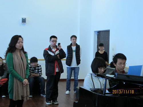 在参观云南艺术学院时,王红星院长亲自接待,并给我们准备了一堂高水准的声乐教学公开课,王院长科学的声音概念,深入浅出的教学方法,出色的范唱让我们深受启发,受益匪浅,随后在声乐系王主任的带领下参观整个校园,观摩琴房、排练厅并就学生实践环节进行交流和沟通