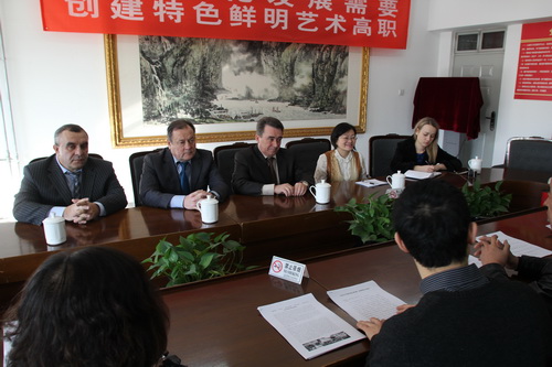 北戏副院长黄珊珊、院办主任王静、艺研所主任蒋淑媛、演艺中心业务部副主任廖维参加了会见。刘侗院长对库里罗校长一行来访表示欢迎,向乌方介绍了“北戏”校史,并表示,我院愿意积极开展与乌克兰高校的合作。库里罗校长介绍了“卢大”,对在刘院长领导下的北戏艺术人才培养水平表示赞赏,并介绍了卢甘斯克国立大学下设艺术学院,邀请北戏的学生到卢大留学,在两校间开展合作。经过磋商,双方在培养中专艺术生升本留学、大专升本、读研及举办学术交流会议、组织学生交流演出等方面达成合作意向。