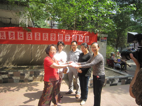 学院在职党员进社区向社区居民赠送少儿戏剧场六一演出票