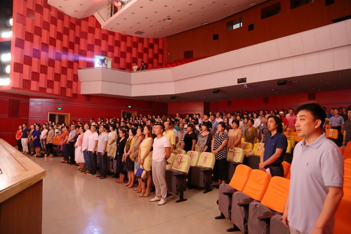 随后获奖教师高彤、中层干部祝真伟代表所有教师进行了发言。新入职的21位教师在副院长吴蕾的带领下进行了教师宣誓,他们表示将敬业爱生、传承文明、弘扬正气、不断充实自己,立志成为一名合格的人民教师。
