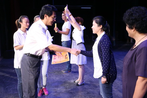 典礼伊始,全体起立唱国歌。随后,院长刘侗进行新学期致辞。他针对上一年度同学们在专业赛场上取得的傲人成绩表示祝贺,同时,鼓励广大同学向比赛获奖的同学学习,争取早日成为北戏的明日之星。
