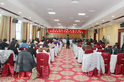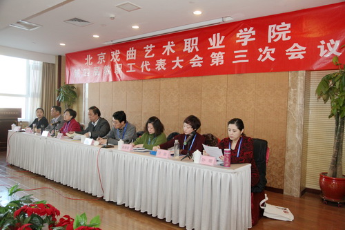 2014年12月31日,北京戏曲艺术职业学院第四届教职工代表大会第三次会议在万方苑国际酒店隆重召开。来自学院各部门66名职工代表和29位特约代表参加了会议,会议由工会副主席王桂洁主持。