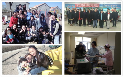 同时,各班也开展了形式多样的学雷锋服务活动。高职舞蹈14班探望了廊坊牧羊地儿童村孤儿院的孩子们。中专昆曲12班来到北京金泰颐寿轩敬老院帮助打扫卫生与老人互动,并进行了慰问演出。