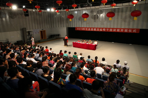 为打造一支高素质的基层文化干部队伍,推进公共文化服务体系建设,实现首都文化大发展大繁荣提供人才保障和智力支持,在北京市文化局的大力支持下,2015年千名基层文化骨培训(戏曲、音乐)班于2015年7月14日在北京戏曲艺术职业学院开班。