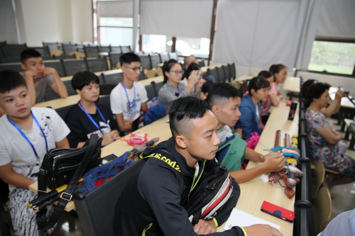首先,副院长黄珊珊向大家介绍到场的人员,对此次参与培训的授课老师进行了逐一的介绍。院长代表北戏对台湾戏曲学院师生的到来表示热烈的欢迎,欢迎宝岛台湾的学生来我院学习,希望借此机遇,加强校与校间的合作,加强两地的文化交流。并在发言完毕将介绍我院情况的《北戏韵律》和《京剧大家绝艺录•武生篇》送给廖兵处长和台湾带队李光玉老师。随后李光玉老师进行发言,她介绍了近几年台湾戏曲学院学生与我院合作的情况,并感谢我院在食住行方面对他们的妥当安排,也感谢诸位老师在百忙之中抽出宝贵的时间对学生进行教导,她表示,学生们一定不会辜负老师们的良苦用心,不会让老师失望的。学生代表李家德继李老师之后进行了发言,他站在讲台上彬彬有礼,向老师和领导们深鞠一躬,感谢我院给予的此次学习机会,并且非常认真的为他们安排一切。他表示,一定会珍惜此次来京学习的机会,将京剧艺术传承下去。最后,中国文化部港澳台办台湾处处长廖兵进行了讲话。他很佩服大家的这种学习精神,虽然是在暑期休息时间,大家还是满怀期待的来到校园中学习。同时大家也很幸运,能够有如此好的学习机会和条件,无论是师资力量还是在日常生活方面,北戏都给予了最大的支持。他鼓励大家多向老师学习请教,因为京剧不仅是中国的骄傲,更是世界的骄傲,京剧这门传统的国粹艺术要靠大家来传承下去!